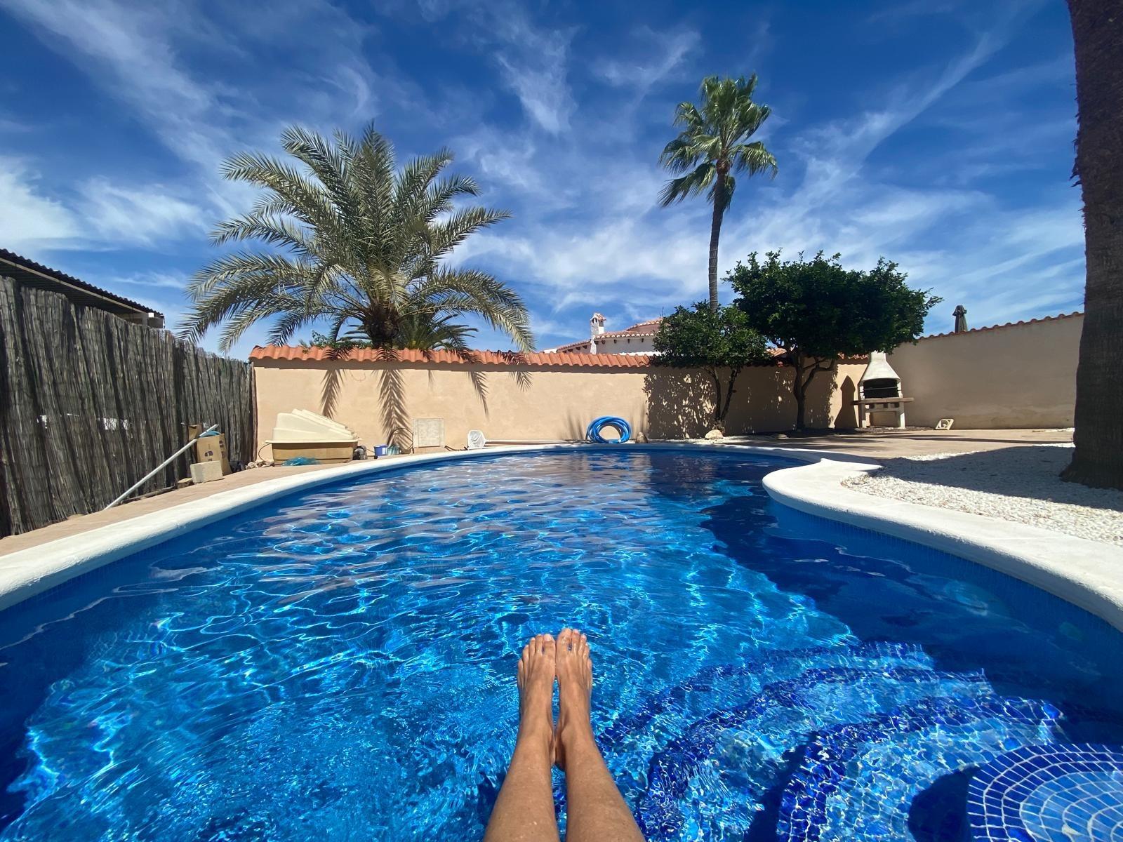 ✨ House with private pool and views of the saltlake in El Chaparral, Torrevieja ✨~~I present to you a home that has EVERYTHING to enjoy the sun and tranquility all year round. This fantastic townhouse in El Chaparral combines space, comfort, and details that make a difference.~~The house has 3 spacious bedrooms and 3 full bathrooms, perfect for living all year or hosting family and friends without space issues. The living room is cozy and full of charm thanks to its fireplace, ideal for cooler winter nights. It also has central heating, more appreciated than many realize in this area.~~The main kitchen is functional and bright, but here’s a bonus I love: there is an additional kitchen in the basement, perfect for celebrations, guests, or even creating an independent area.~~The exterior is where this property truly shines