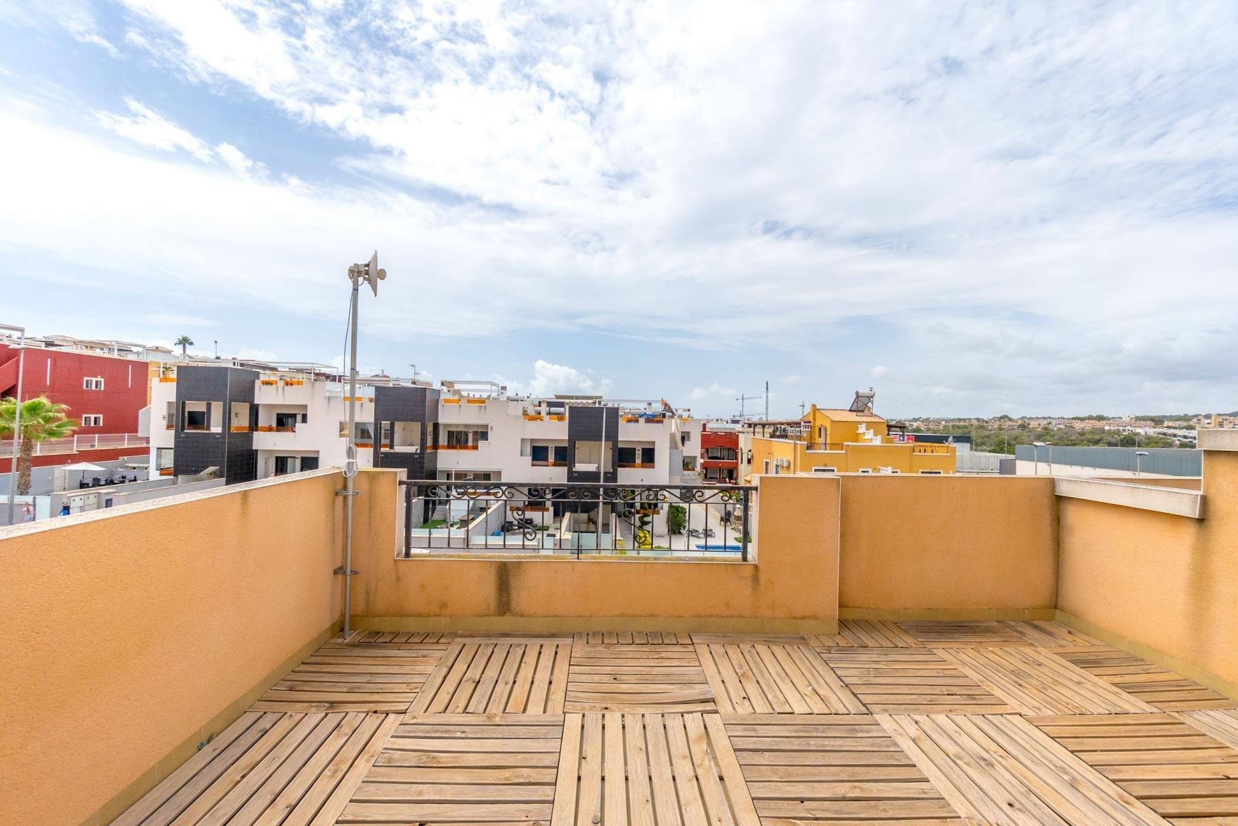 We are pleased to present this cozy and spacious quad in Dream Hills II, a well-established and popular area in Los Altos – perfect for those looking for a holiday home in the sun or a comfortable home to live in all year round.~~The property has a well-planned layout over three floors and offers both comfort and plenty of space:~~Ground floor: Large tiled garden with pergola, bright and inviting living room with dining area, separate kitchen with good cupboard space, one bedroom and one bathroom.~First floor: Two bedrooms and one bathroom. The main bedroom has access to a private terrace with open views.~Second floor: Private roof terrace – perfect for sunny days, barbecues and pleasant evenings.~~Large, south-facing tiled garden with pergola, where there is plenty of space for both dining table, sunbeds or a cozy lounge area – here you can enjoy outdoor living all day and evening. In addition, there is a spacious storage room with ample storage space.~~The property is sold fully furnished and is ready to move into – just bring your suitcase!~~The communal areas include a lovely swimming pool with green areas for relaxing and socializing.~~The location is also a big plus – in peaceful surroundings, yet within walking distance to shops, restaurants, pharmacy and public transport. Short distance to both Torrevieja center and the beautiful beaches of Orihuela Costa.~~This is a home with lots of charm and plenty of outdoor space – for sunshine, social living and peaceful relaxation.~~Contact us today for more information or to arrange a viewing or video viewing!~