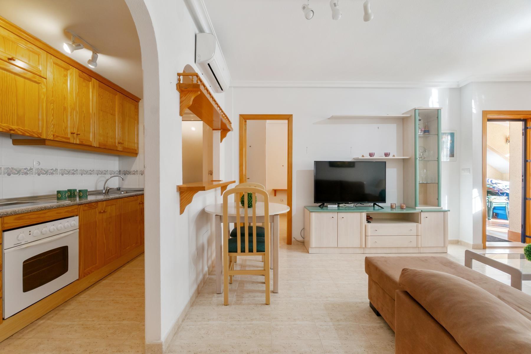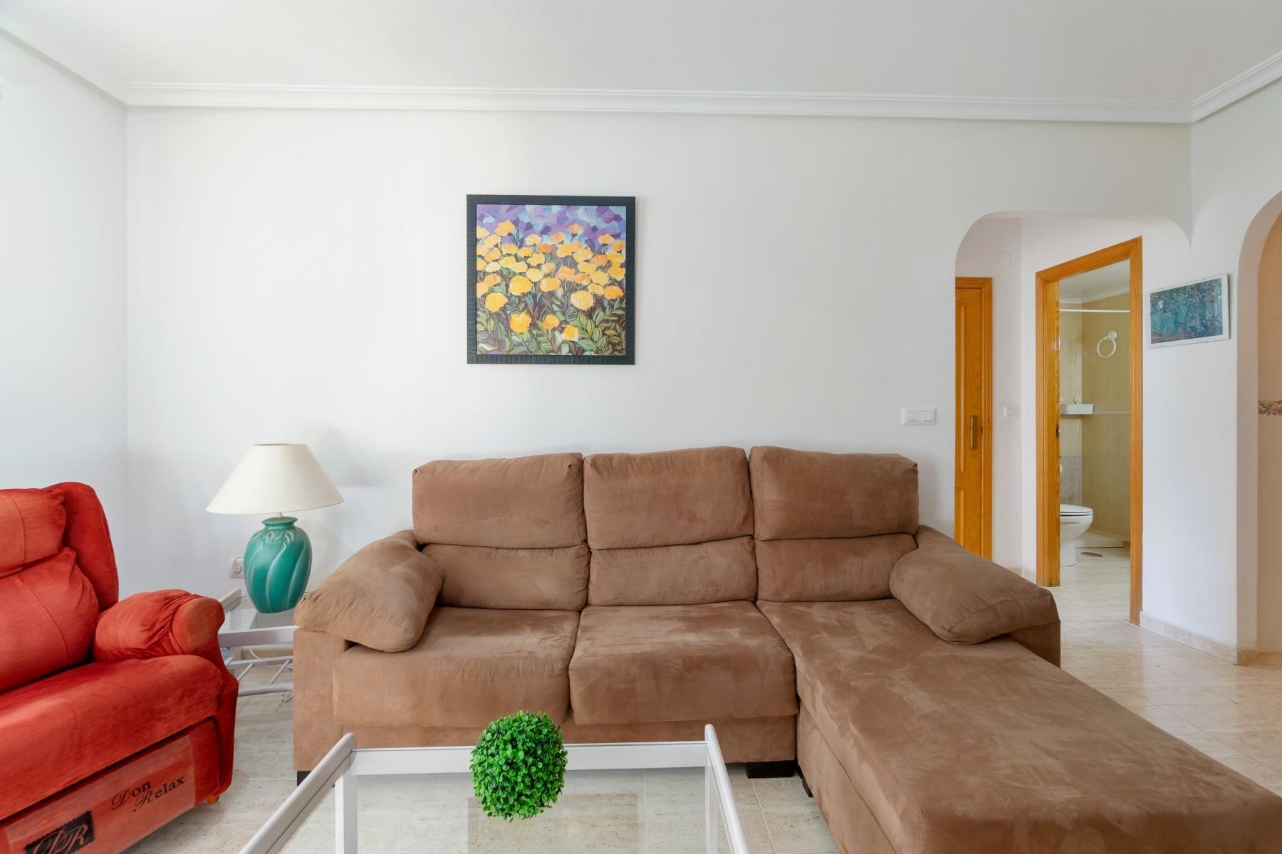 We offer this charming ground-floor bungalow, located in the prestigious Zeniamar II Residential, one of the most sought-after areas of Orihuela Costa. Its location is unbeatable: surrounded by supermarkets, restaurants, cafés, medical centers, and public transport, and just a few minutes from the beaches of Orihuela Costa, golf courses, and the renowned Zenia Boulevard Shopping Centre.~~The property features a covered terrace leading into a bright living-dining area with a fully equipped open-plan kitchen, including a utility room, as well as a complete bathroom, two bedrooms, and a storage room. It also boasts a private garden, ideal for enjoying the Mediterranean climate, relaxing outdoors, or spending quality time with family.~~The residential complex offers a quiet and well-maintained environment, with green areas and a communal swimming pool, perfect as both a permanent residence and a holiday home. The property is sold fully furnished, a move-in-ready home from day one, set in a privileged location.~~Don’t miss this opportunity—come and visit it, you’ll fall in love the moment you step inside.~