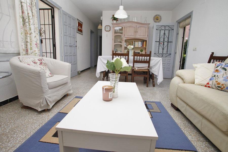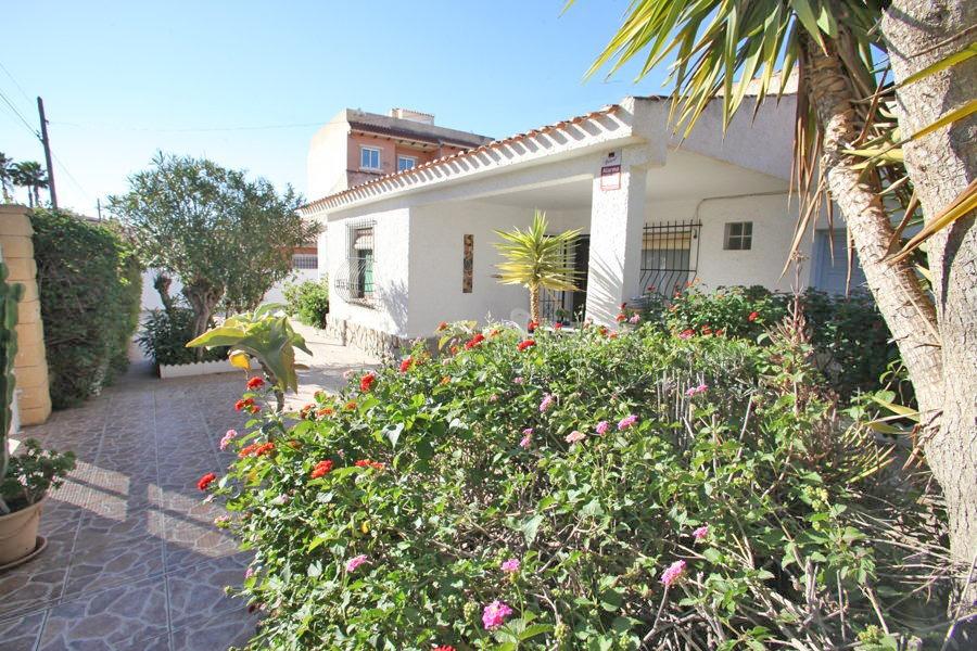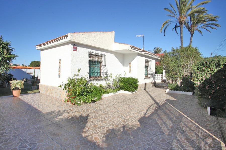 Bonito chalet independiente de dos dormitorios, baño, cocina, trastero, gran salón con chimenea y dos amplios porches para disfrutar del exterior, uno orientado al este y otro al oeste. Se encuentra situado en una parcela de 550m2 ajardinada con césped, árboles frutales y plantas ornamentales. La distancia a la playa es de 400m2 y está cercano a todos los servicios fundamentales y de fácil acceso a todas las direcciones. Dispone de entrada para varios vehículos.~En la mejor zona de Torrevieja~Semi-amueblado~Gastos e impuestos no incluidos en el precio~