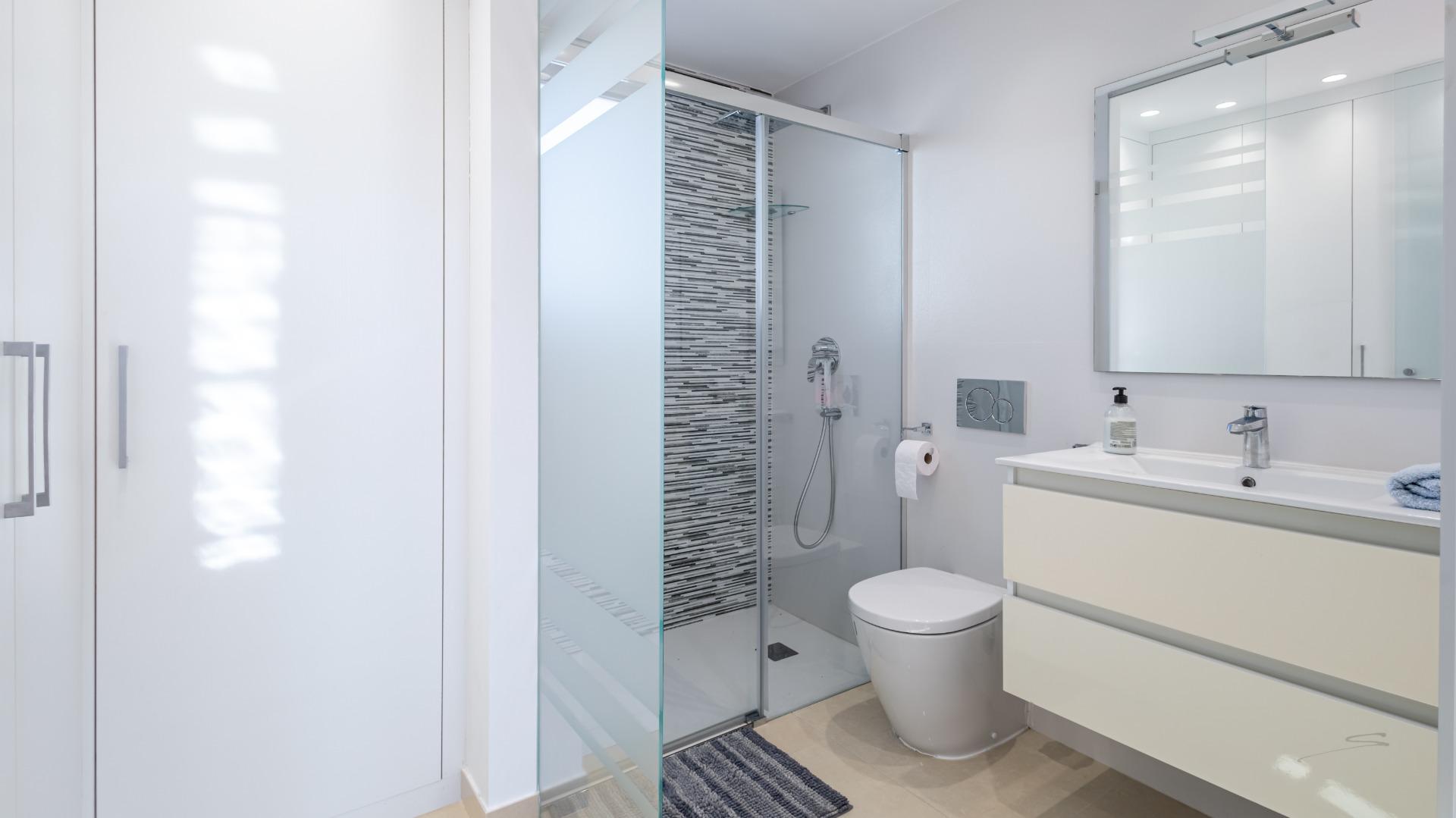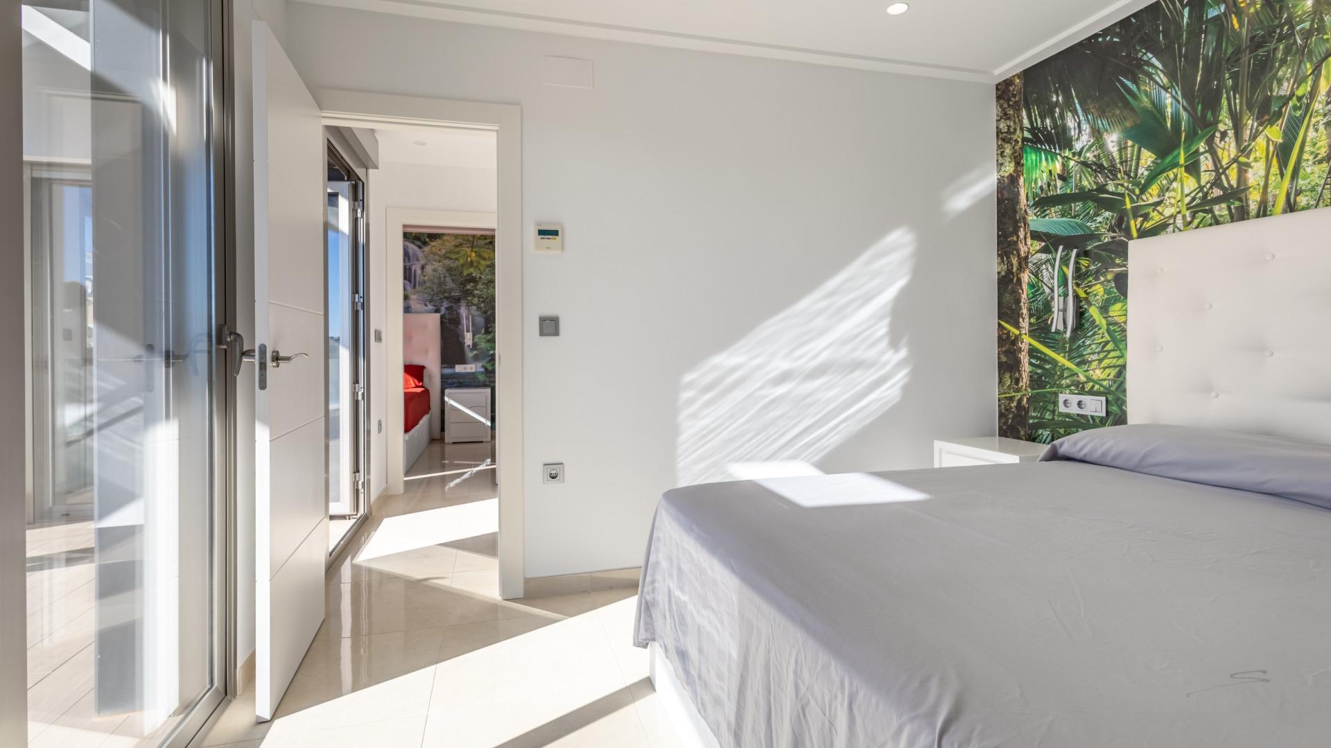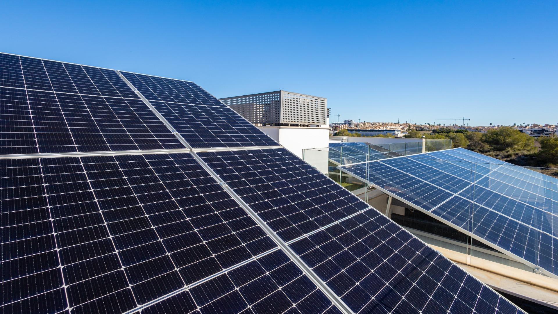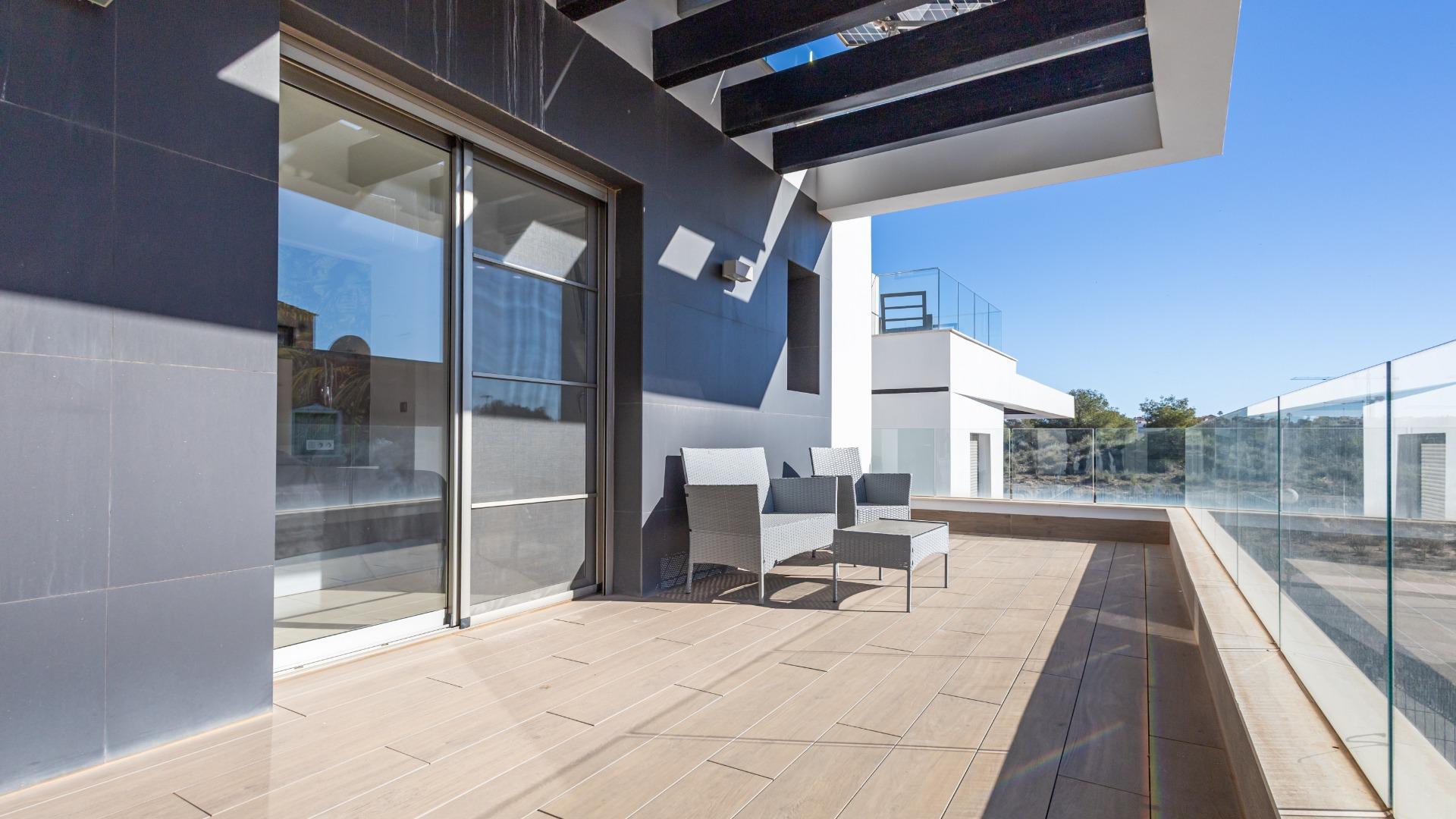 Welcome to this spectacular independent and fully energy-self-sufficient villa in Orihuela Costa, located just 4 km from the beaches and very close to the renowned La Zenia Boulevard shopping centre. Built in 2019 and practically unused, you will have the privilege of enjoying a home that is almost brand new and lacks absolutely nothing. Upon arrival, you are greeted by an electric entrance gate with video intercom, offering comfort and security from the moment you enter. You can park your car inside the plot and enjoy a fully paved garden that includes two cosy artificial grass areas perfect for sunbathing. The private pool, featuring an elegant waterfall, allows you to cool off during the hottest summer days, while the perimeter fencing combines iron and tempered glass for a modern and exclusive touch.~~The villa also features a fully equipped outdoor kitchen, ideal for enjoying the Mediterranean climate almost all year round. Stepping inside, you will notice the solid entrance door, which ensures maximum security for your home and family. The living room and kitchen stand out for their impressive natural light, creating spacious, comfortable and inviting areas. All windows have mosquito screens, and the living room includes a pellet stove that provides warmth during the winter months. The interior kitchen has a modern style with clean lines and ample storage capacity, equipped with an oven, microwave, dishwasher and a large American-style refrigerator. On this same floor there is a guest toilet that also houses the washer-dryer and water heater.~~Descending to the semi-basement, you will find a large space currently set up with a bar for preparing cocktails, though it can be adapted for any use according to your needs. This level includes two very spacious bedrooms, each with its own private bathroom, as well as a small storage room. The floor benefits from excellent insulation thanks to a one-metre-wide chamber surrounding the entire semi-basement, also ideal for additional storage. On the upper floor, there are two more bedrooms, each with an en-suite bathroom, along with an area used as a wardrobe or storage space. Both bedrooms provide access to a large terrace of approximately 30 m², perfect for enjoying the sun and tranquillity.~~Finally, the solarium is equipped with solar panels that make this wonderful house completely energy-independent, thanks to a high-capacity photovoltaic installation with batteries. In summary, this villa offers modernity, quality, design and efficiency in a privileged Mediterranean setting. If you are looking for a move-in-ready home, equipped down to the last detail and designed for maximum comfort, look no further: this is your home.~
