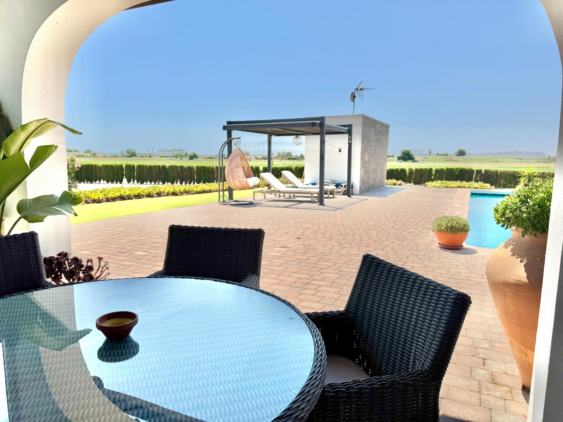 Esta impresionante villa de lujo ecoeficiente ofrece 4/5 dormitorios, incluyendo dos amplias suites principales con baño en suite y vestidor, además de un espacioso baño familiar. Con una superficie construida de 425 m² y asentada sobre una parcela de 21.000 m², la villa proporciona un equilibrio ideal entre privacidad, espacio y versatilidad de uso, tanto para residencia permanente como para segunda vivienda o inversión. Cuenta con licencia de primera ocupación en vigor, lo que garantiza su legalidad y habitabilidad inmediata.~La parcela se distribuye en dos zonas diferenciadas: un jardín paisajista cerrado de 5.000 m², con acceso mediante puerta electrónica, y 16.000 m² adicionales destinados a uso agrícola opcional, ideales para huerto, frutales, espacio para mascotas, o incluso instalaciones ecuestres. La propiedad también incluye una piscina de agua salada de 12 x 6 metros, con cubierta motorizada y posibilidad de calefacción, además de ducha exterior y aseo para mayor comodidad.~Construida según los principios del estándar Passive House, esta villa garantiza una eficiencia energética excepcional y un confort térmico constante durante todo el año. Gracias a la combinación de hermeticidad avanzada, aislamiento térmico de última generación y un sistema de ventilación mecánica con recuperación de calor y frío, el consumo energético se reduce al mínimo, eliminando la necesidad de calefacción o aire acondicionado convencionales.~~En la planta baja, completamente accesible para personas con movilidad reducida, se encuentra una distribución de planta abierta con techos altos que conecta el salón, el comedor y la cocina, equipada con electrodomésticos de alta gama y abundante luz natural. Esta planta también alberga el dormitorio principal 2, los dormitorios 3 y 4, y un baño familiar completo. Varias estancias tienen acceso directo al patio ajardinado, ideal para disfrutar del clima mediterráneo.~~En la planta superior se ubican el dormitorio principal 1, con vistas abiertas, baño privado y vestidor, así como un dormitorio adicional que puede funcionar como oficina, estudio o sala multifuncional, perfecto para quienes trabajan desde casa.~~La propiedad está equipada con un sistema domótico inteligente, que permite controlar la iluminación, la ventilación, la temperatura y la humedad de forma remota. Las ventanas de triple acristalamiento, el aislamiento térmico de alta eficiencia y un completo sistema de seguridad con cámaras ofrecen un entorno confortable, silencioso y seguro en todo momento.~~En el exterior, la villa ofrece múltiples opciones de uso y disfrute: árboles frutales maduros, zona de huerto, taller o espacio de bricolaje, cochera cubierta para dos vehículos y amplio aparcamiento exterior. El terreno llano y vallado resulta ideal para mascotas, caballos o cualquier proyecto de vida autosuficiente y en contacto con la naturaleza.~~Situada en una zona rural tranquila pero muy bien comunicada, la propiedad está a solo 30 minutos del Aeropuerto Internacional de Alicante y a 15 minutos en coche de las playas de Guardamar del Segura y La Marina. También se encuentra cerca de escuelas, supermercados, mercados locales y varios campos de golf de prestigio.~~Una oportunidad única para quienes valoran la sostenibilidad, el diseño, la privacidad y la calidad de vida. Ideal para familias, profesionales que teletrabajan o quienes buscan una residencia preparada para el futuro en un entorno natural y exclusivo.~