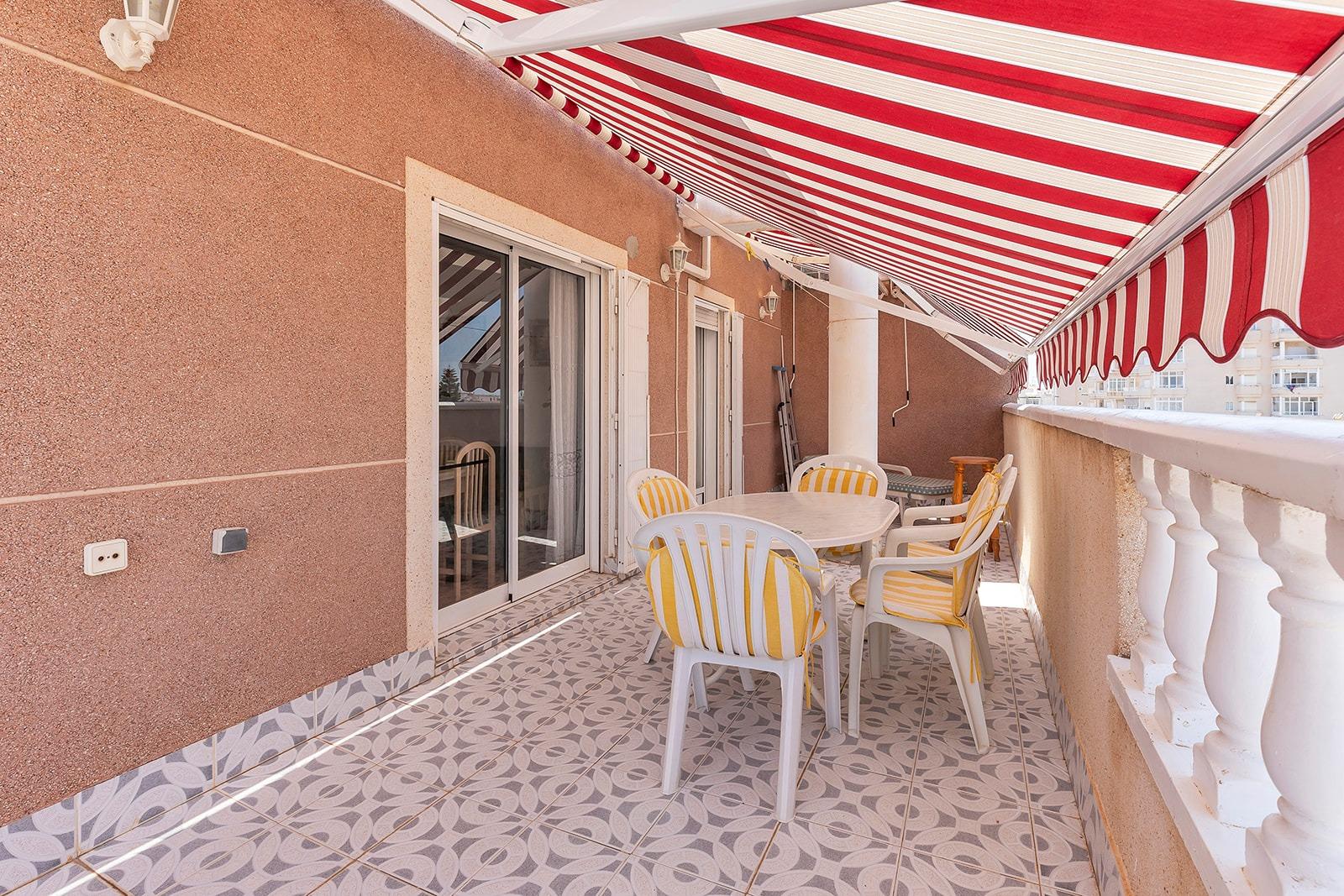 Descubre este luminoso ático de 3 dormitorios y 2 baños, situado en la tercera planta de un edificio con piscina comunitaria en una zona tranquila y bien conectada de Nueva Torrevieja.~~La vivienda destaca por su amplia terraza orientada al oeste, ideal para disfrutar del sol de la tarde, con vistas abiertas a la calle, las salinas y la piscina del residencial. La cocina es independiente y cuenta con acceso directo a la terraza, perfecta para disfrutar de comidas al aire libre.~~Se encuentra en buen estado y está lista para entrar a vivir. Incluye dos plazas de garaje en el mismo edificio, con la posibilidad de cerrarlas para mayor privacidad y funcionalidad.~~A pocos pasos del Centro de Salud La Loma y de un colegio, y a tan solo 15 minutos caminando de las playas del Cura y de los Locos, esta propiedad es ideal tanto como residencia habitual como para disfrutarla en vacaciones o destinarla al alquiler.~~Una oportunidad para vivir cerca del mar con todas las comodidades. Solicita más información o agenda tu visita.~~