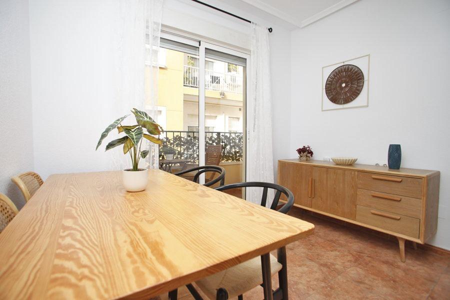 Este encantador apartamento se encuentra en el corazón de Torrevieja, a solo 100 metros de la playa del Acequión y del pintoresco puerto deportivo. Con una superficie construida de 77 m² y útil de 61 m², este inmueble presenta un diseño funcional que incluye dos confortables habitaciones dobles. Su ubicación privilegiada le otorga vistas al mar desde su acogedora terraza de aproximadamente 4 m², donde podrá disfrutar magníficos atardeceres orientados hacia el oeste.~~El edificio es pequeño y exclusivo con solamente dos apartamentos por planta, lo cual asegura privacidad y tranquilidad para sus residentes. Además cuenta con áreas verdes adyacentes que realzan aún más su atractivo. La propiedad está bien conservada e idealmente equipada para satisfacer las necesidades contemporáneas: dispone cercanía a autobuses urbanos así como acceso fácil a centros comerciales locales, colegios e incluso hospitales.~~Con un precio competitivo en el mercado inmobiliario actual (145000 euros), esta opción representa una oportunidad única tanto si busca residencia permanente o inversión vacacional.~~Semia-mueblado~~Gastos e impuestos no incluidos~