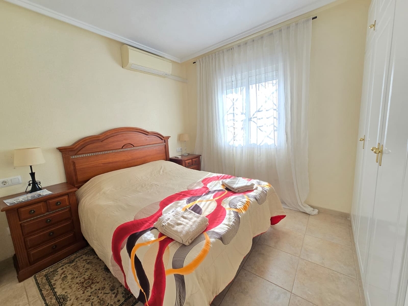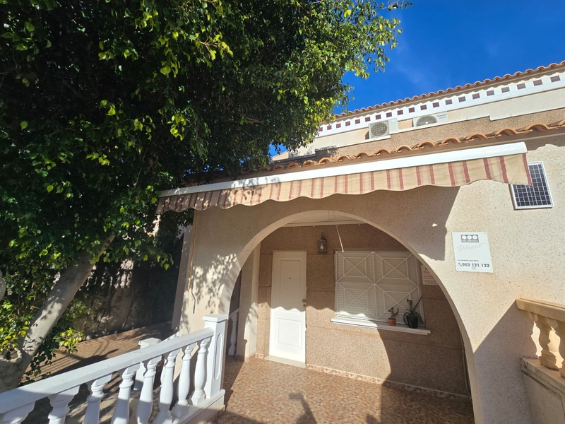 Moderno chalet en urbanizacion cerrada en Aguas Nuevas, Torrevieja! Prestigioso complejo esta ubicado en mejor area de Torrevieja a tan solo 20 min andando hasta la playa los locos. Bares , restaurantes y supermarket mercadona esta a 10 min andando Chalet dispone de 3 dormitorios y 2 baños, amplio salon comedor, cocina independiente, totalmente equipada