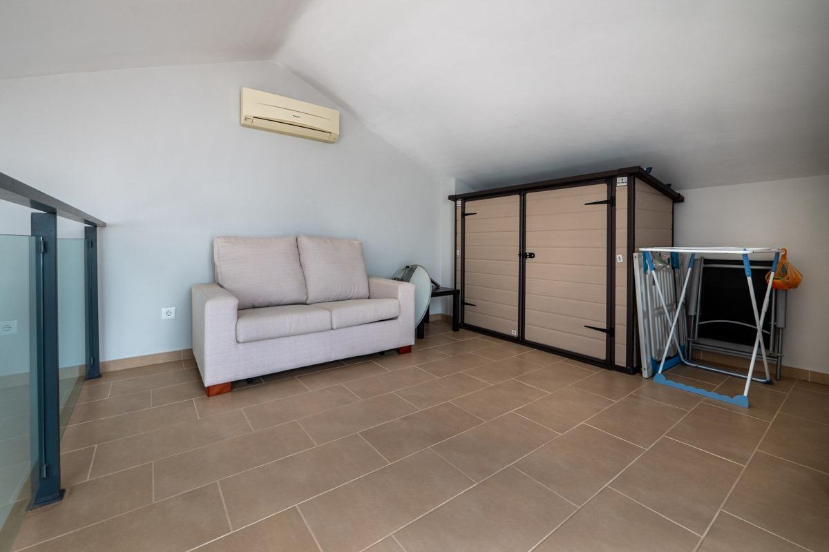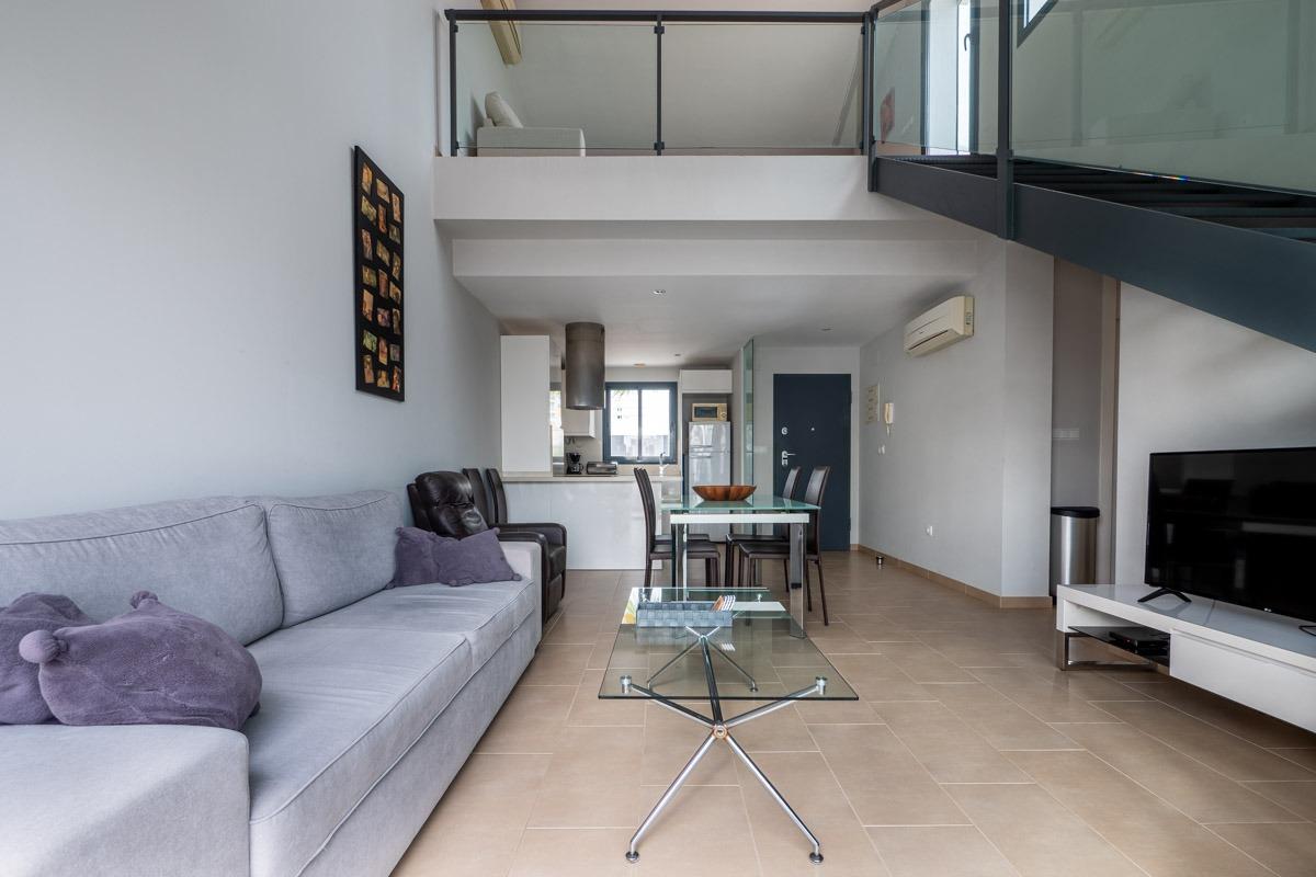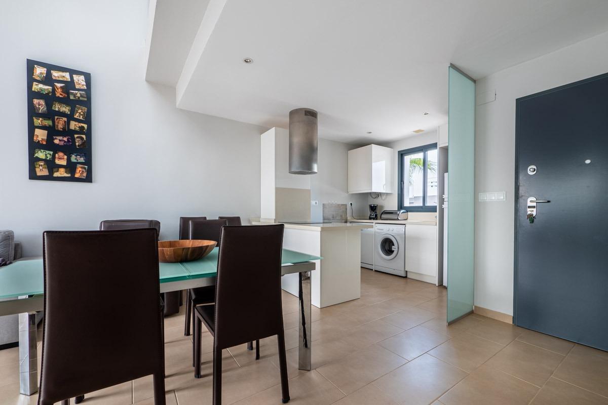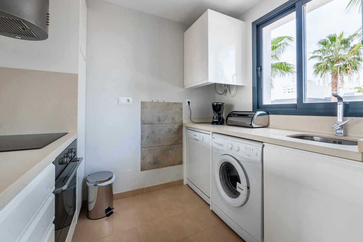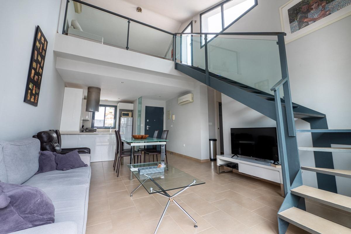 La propiedad cuenta con una amplia sala de estar de planta abierta con muebles de alta calidad, que ofrece un ambiente luminoso y aireado.~~La sala de estar se extiende hasta un altillo que conduce a un impresionante solárium, perfecto para relajarse o entretenerse, con mucha luz natural y vistas panorámicas.~Las dos habitaciones son amplias y cuentan con armarios empotrados, y los dos modernos cuartos de baño tienen acabados de alta calidad, cada uno con elegantes duchas a ras de suelo.~La cocina está totalmente equipada con electrodomésticos modernos y mucho espacio de almacenamiento, combinando a la perfección estilo y funcionalidad.~~Situado en una ubicación privilegiada cerca de los animados servicios de Villamartín, encontrará una gran variedad de tiendas, bares y restaurantes a pocos pasos.~Para los amantes del golf, el famoso Club de Golf Villamartín está cerca, lo que hace que este apartamento sea ideal tanto para el ocio como para un estilo de vida activo.~Esta propiedad ofrece una combinación de comodidad, estilo y conveniencia en una de las zonas más codiciadas de la región.~