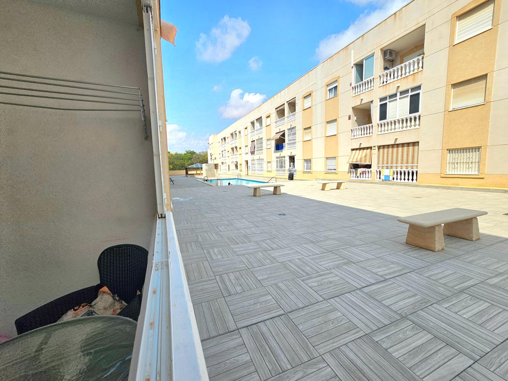 Ofrecemos este magnífico apartamento, en planta baja con vistas a la piscina a tan solo 900 metros de la playa del Cura, muy cerca de todo tipo de servicios tales como supermercados, farmacias, cafeterías, bancos y a un solo paso de la estación de autobuses.~La vivienda consta de 1 amplio dormitorio, 1 baño, salón/comedor y una terraza muy acogedora donde podrás disfrutar tranquilamente durante todo el año de las estupendas temperaturas de Torrevieja!~