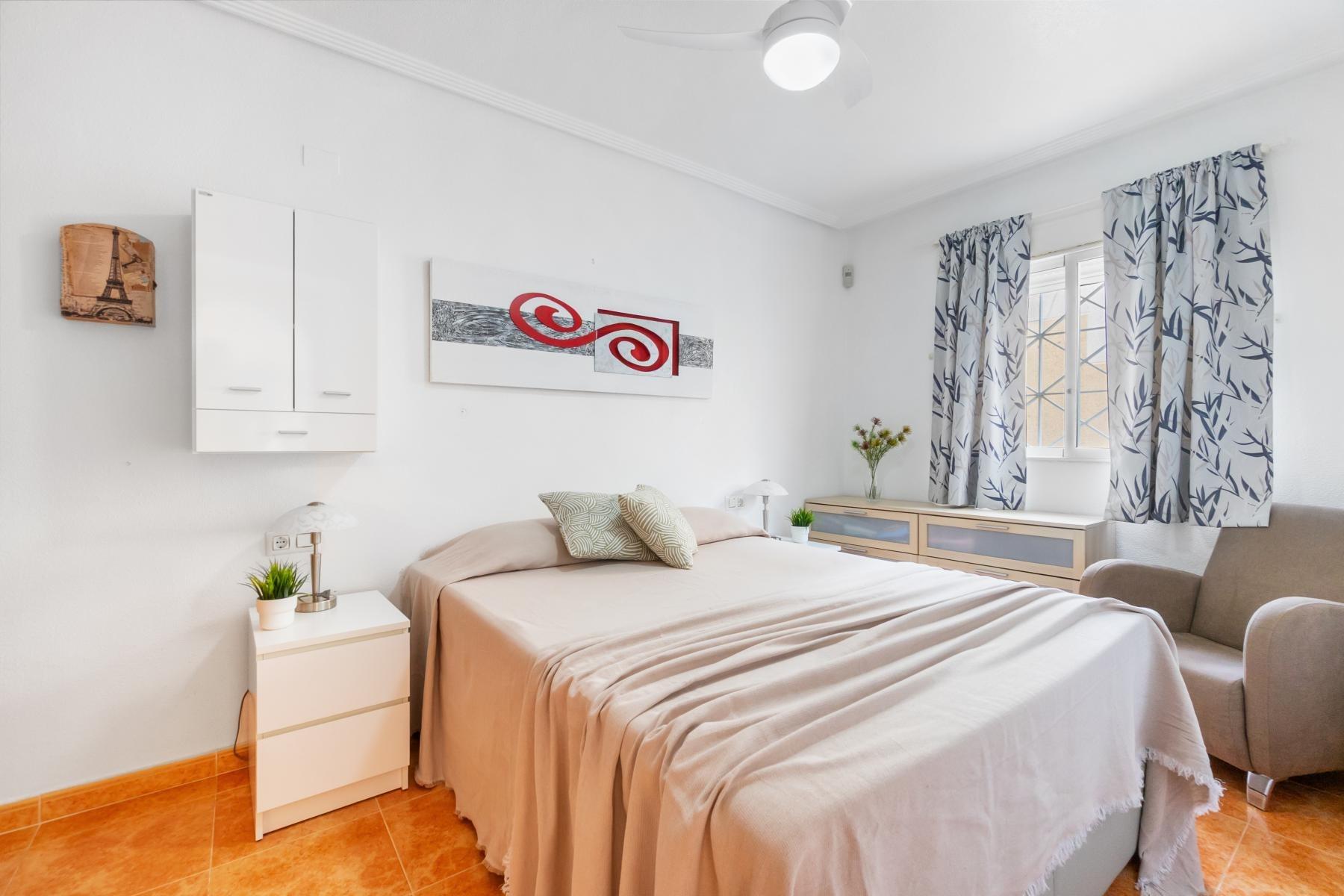 Encantadora villa independiente en Residencial Baños de Europa III – Torrevieja~~¿Buscas un lugar donde disfrutar del clima mediterráneo durante todo el año? Esta preciosa villa unifamiliar, ubicada en una de las zonas más tranquilas de Torrevieja, te enamorará. Situada en el residencial Baños de Europa III, rodeada de naturaleza y con acceso a piscina comunitaria, es el lugar perfecto para vivir o pasar tus vacaciones.~~La vivienda está distribuida en una sola planta y ofrece:~~2 dormitorios y 1 baño muy funcional.~~Luminoso salón-comedor, ideal para relajarte o compartir en familia.~~Cocina semiabierta y totalmente equipada, con acceso directo al jardín.~~Acogedora terraza acristalada con toldos, perfecta para desayunos, comidas o como espacio extra de descanso.~~En el exterior, disfrutarás de una amplia parcela de 111 m² que rodea la casa, con espacio para aparcar tu coche en la propiedad, trastero y varias zonas para relajarte o disfrutar con amigos y familiares.~~La joya de la vivienda es su solárium privado de 26 m², ideal para tomar el sol en total intimidad y contemplar las vistas abiertas al residencial y a la laguna salada de Torrevieja.~~Gracias a su excelente orientación, podrás disfrutar del sol durante todo el día y de una casa luminosa durante todo el año. Se vende completamente amueblada y lista para entrar a vivir.~~La ubicación es inmejorable: un entorno tranquilo, con piscina comunitaria para residentes, zonas verdes, todos los servicios a mano y a pocos minutos en bicicleta del centro de Torrevieja.~~No dejes escapar esta oportunidad. ¡Reserva tu visita hoy mismo y déjate conquistar por esta villa!~~~~